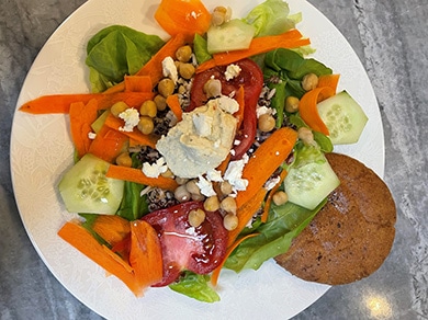 - Feta, olives, red onion, cucumbers and tomatoes, top with a squeeze of lemon, mint and parsley