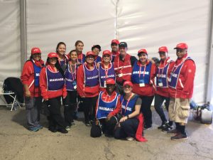 At 7am we all meet at the corner of Michigan Ave and 11th to check in and get our hats and jackets.  They are red this year and have been for the past several years, since massage got lumped in with all medical practitioners.  Everyone agrees the blue jackets looked cooler, and if we could get one of the gray ones we see some people have that would be even cooler still, but that the red ones are nice enough, and they’re free after all.  Here at check in we get to see our current students as well as the alumni who have volunteered to work in the medical tent with Mike Hovi, our program director, and it’s always a nice reunion with familiar faces, getting to hear the successes they’ve had in their careers thus far.